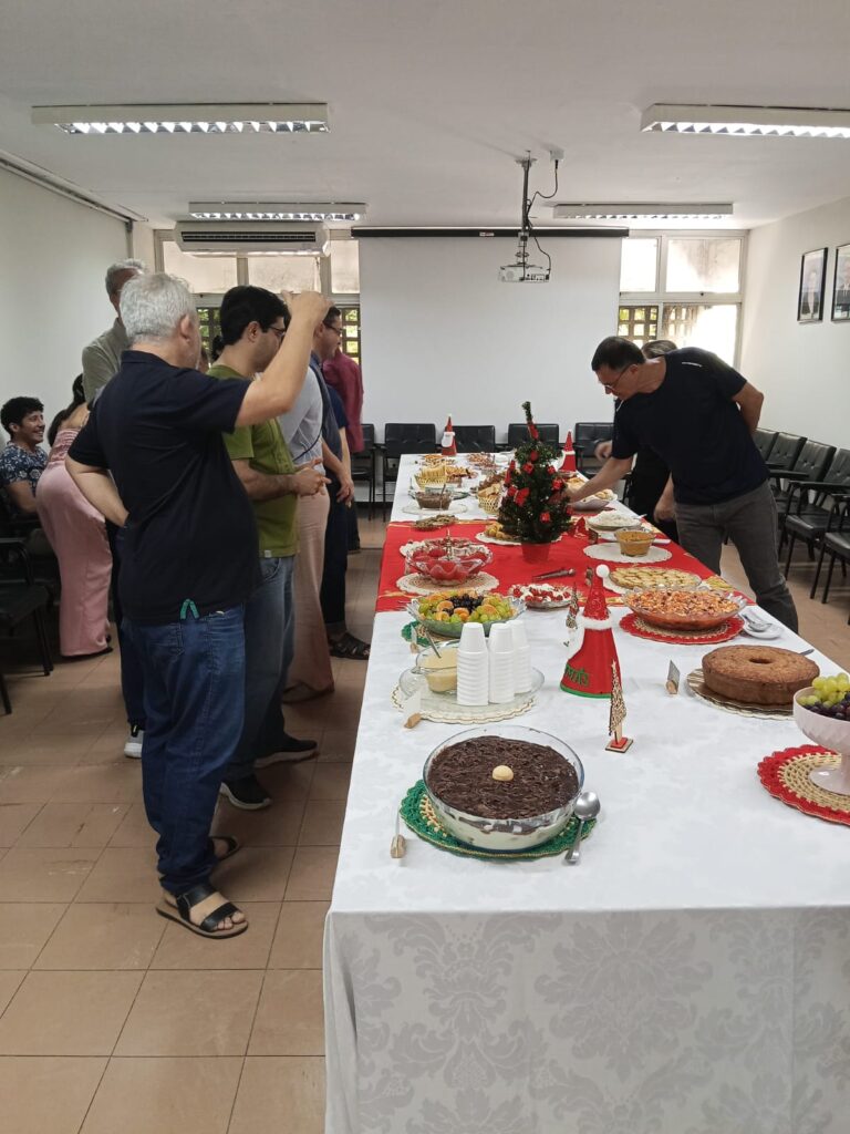 Na manhã de ontem, quinta-feira, 11 de dezembro, reunimos professores, técnicos-administrativos, colaboradores e estudantes para a nossa tradicional Confraternização de Natal na Sala de Reuniões do Centro de Ciências.