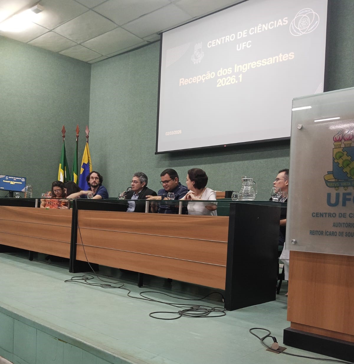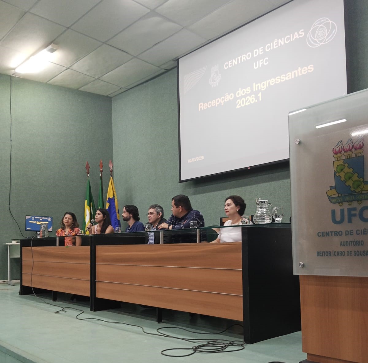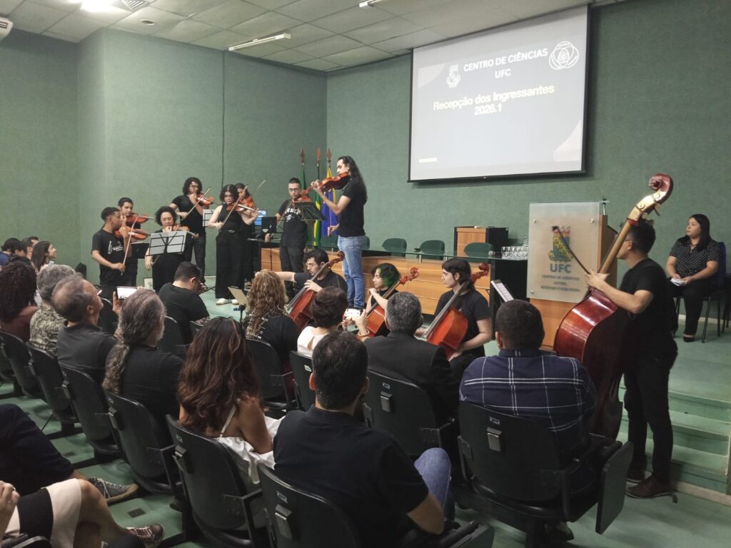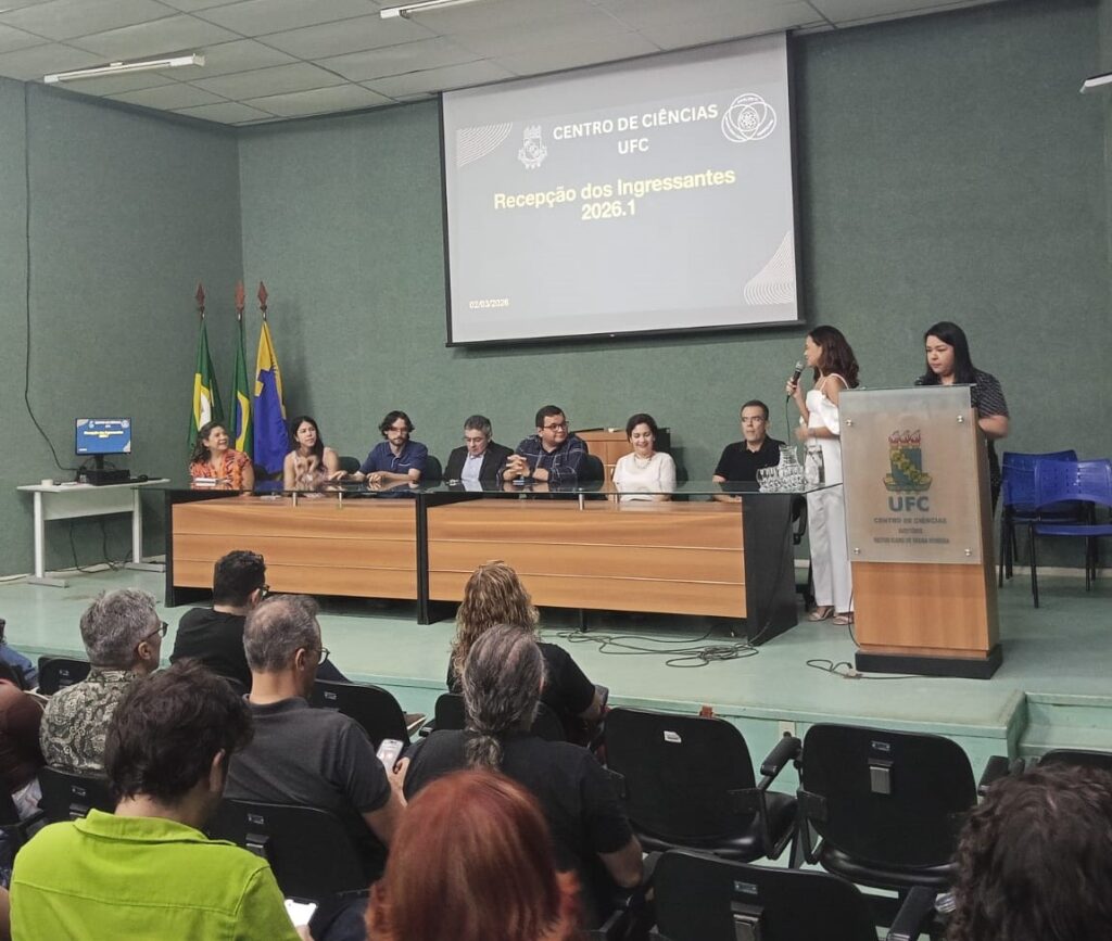 Data da publicação: 3 de março de 2026 Categoria: NotíciasO Centro de Ciências da Universidade Federal do Ceará (UFC) realizou, na manhã desta segunda-feira, 2 de março de 2026, a recepção oficial dos seus novos estudantes. O evento, que teve início às 8h30, reuniu os novos ingressantes, docentes e servidores do Centro de Ciências no intuito de integrar os recém-chegados à comunidade acadêmica.