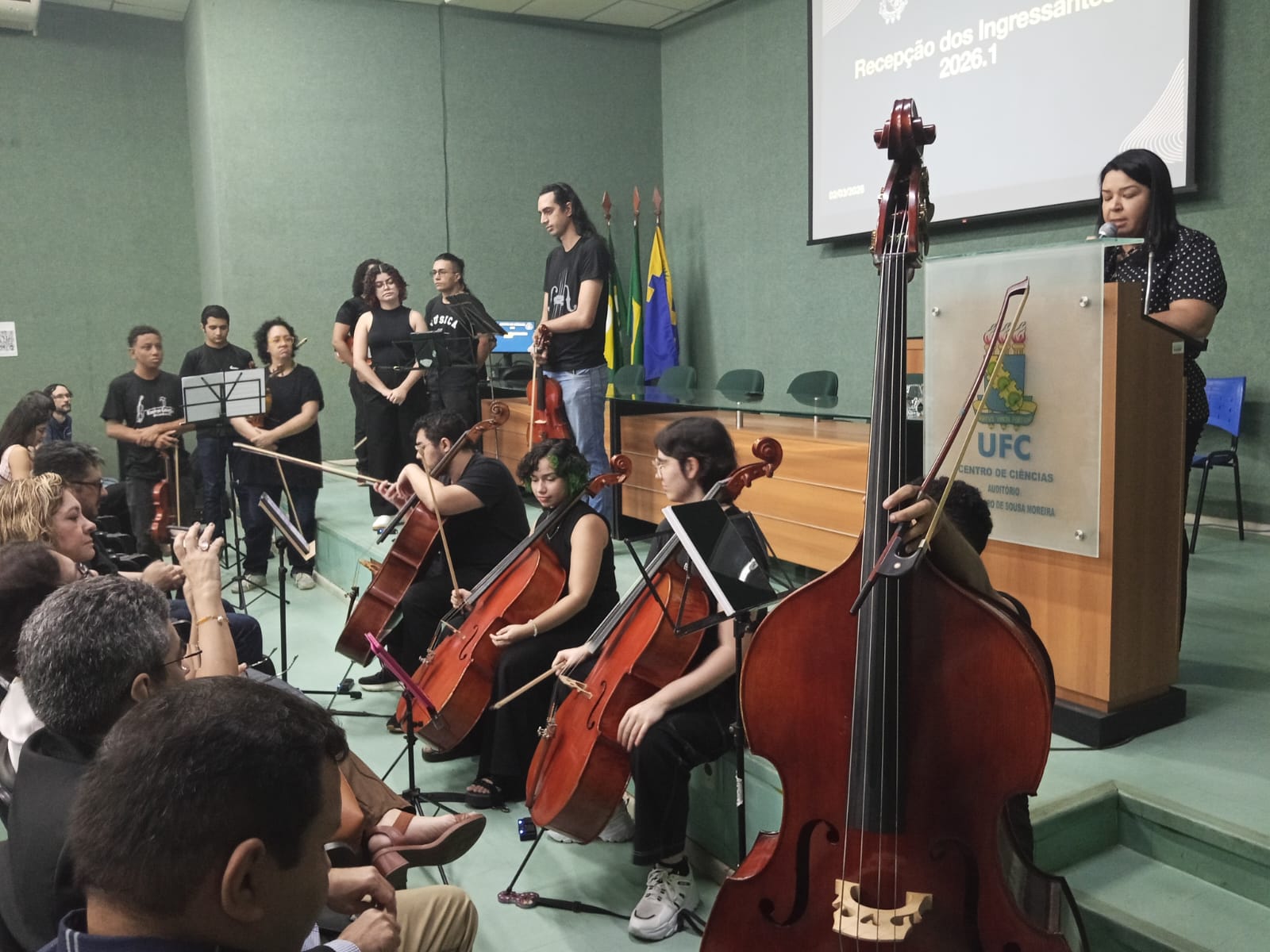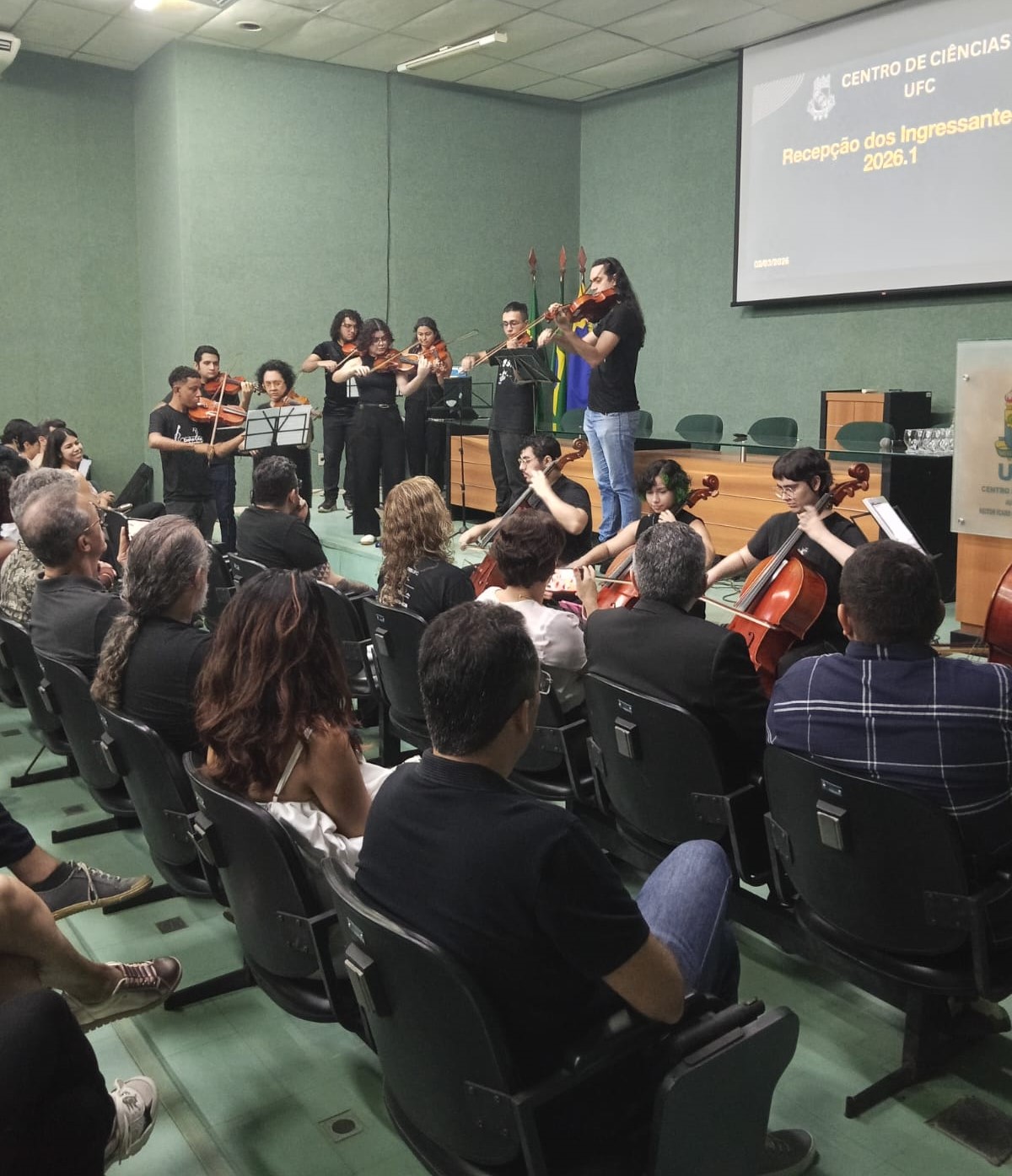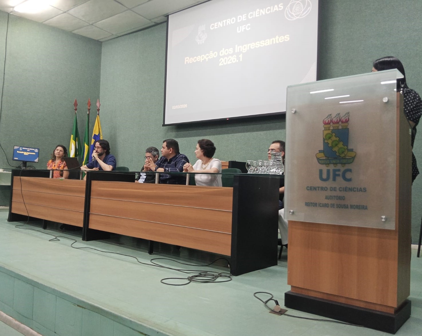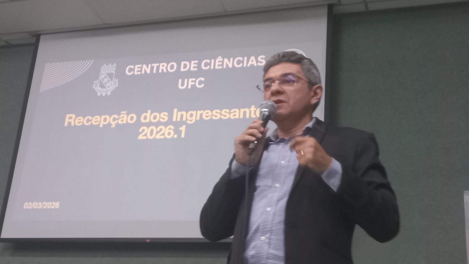Data da publicação: 3 de março de 2026 Categoria: NotíciasO Centro de Ciências da Universidade Federal do Ceará (UFC) realizou, na manhã desta segunda-feira, 2 de março de 2026, a recepção oficial dos seus novos estudantes. O evento, que teve início às 8h30, reuniu os novos ingressantes, docentes e servidores do Centro de Ciências no intuito de integrar os recém-chegados à comunidade acadêmica.