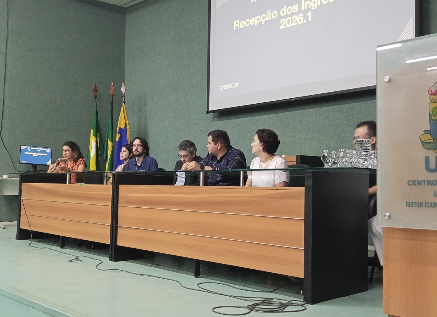 Durante a cerimônia, os componentes da mesa destacaram a importância da acessibilidade, da pesquisa e do engajamento estudantil desde o início da trajetória universitária. O Diretor, Prof. Wandemberg Paiva Ferreira, realizou uma apresentação detalhada sobre a estrutura e o funcionamento do Centro de Ciências, oferecendo aos ingressantes um panorama das oportunidades que a unidade oferece.